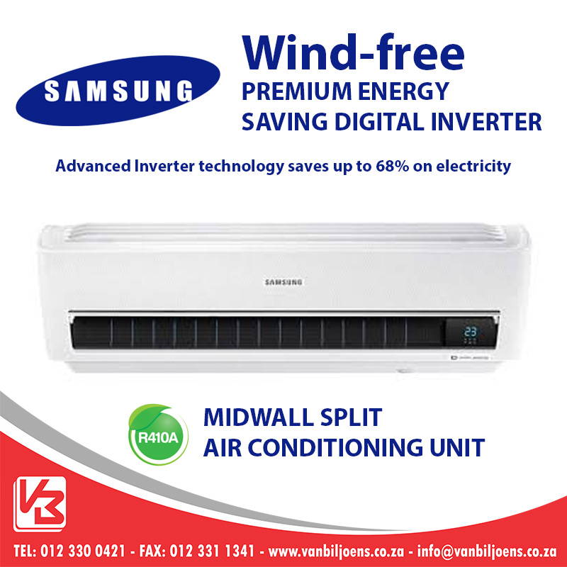 12000 BTU SAMSUNG AR9500 Windfree V2 Inverter ensures cool summers and warm winters with energy-saving efficiency.